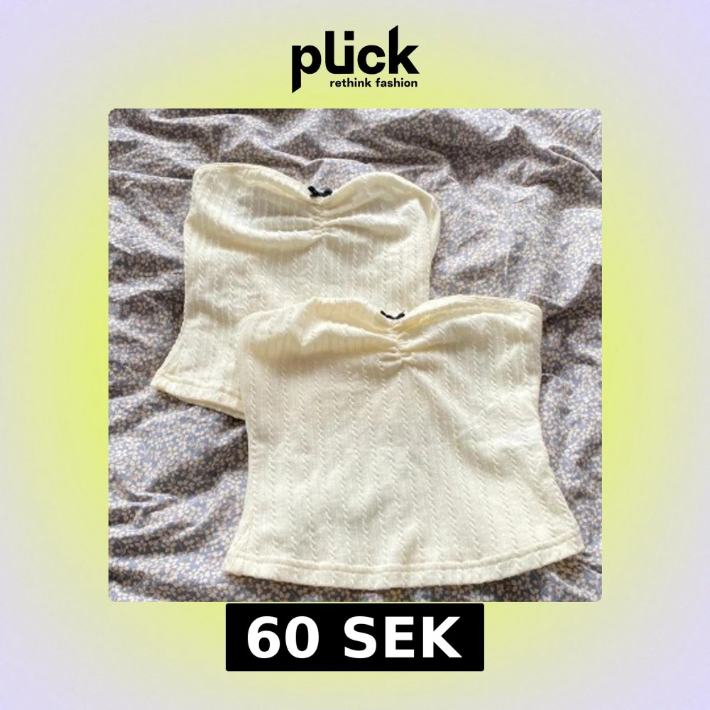 Två söta vita tubtoppar med ribbad struktur och liten svart rosett framtill. Topparna har bandeau-modell och lätt rynkning vid bysten för en snygg passform. Perfekta att styla med jeans eller kjol för en fräsch look. 1 för 50kr eller två för 60kr 🤗