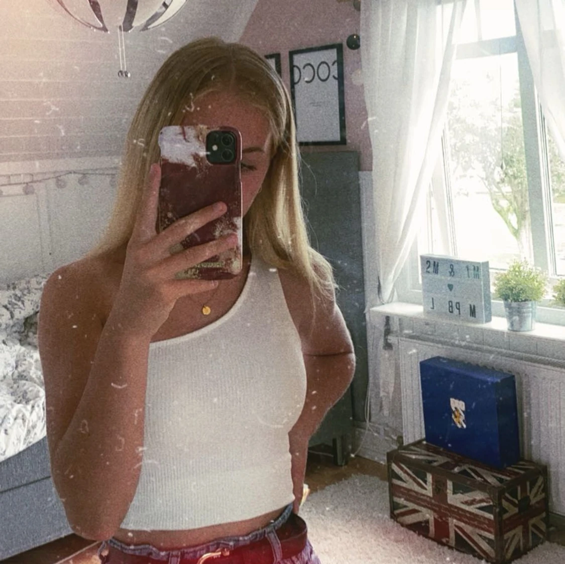 Fint vitt linne med ett band! De går ner till midjan men har vikt upp det som man ser på bilden!🥰