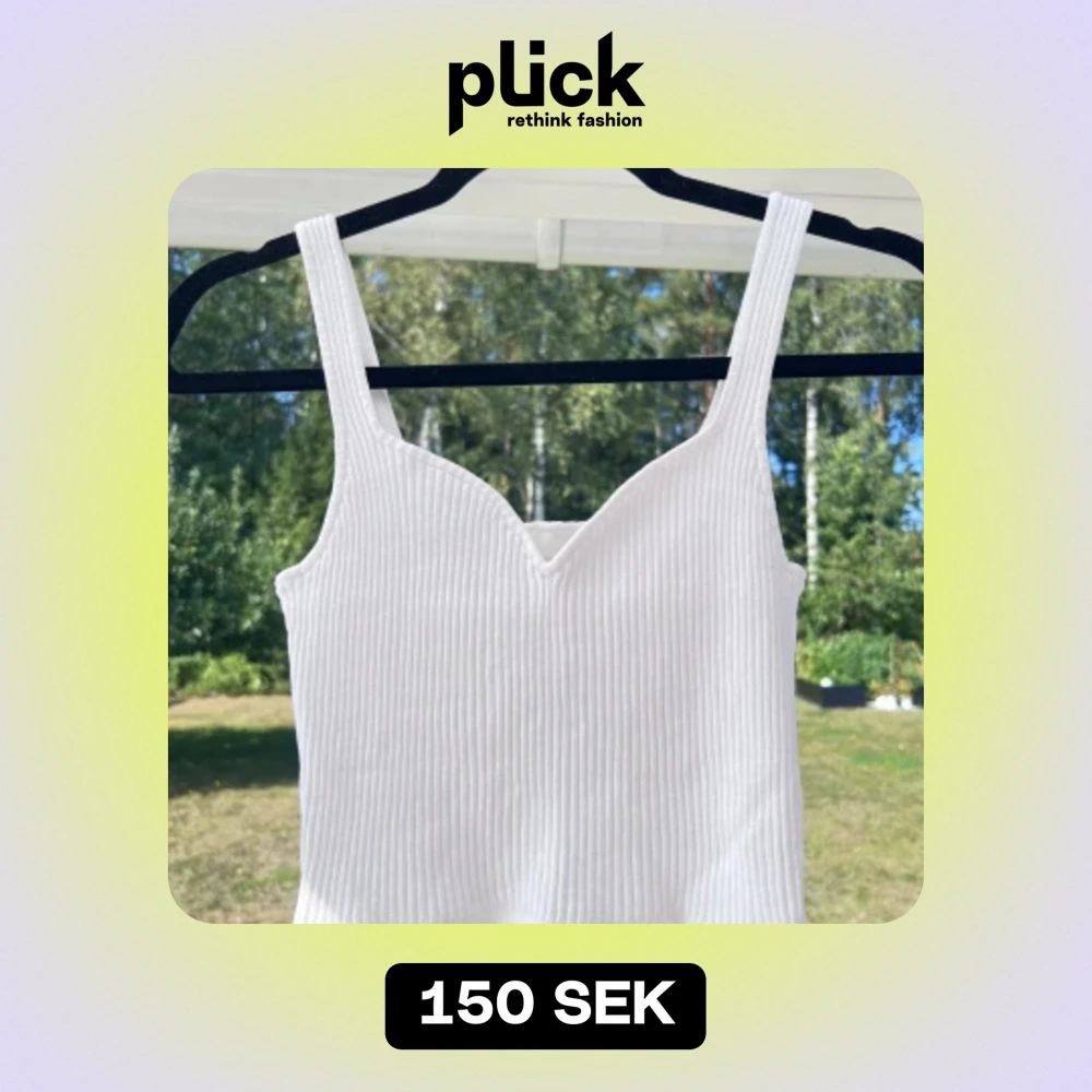 Ett vitt ribbat linne från H&M i storlek XS. Extremt stretchig och passar säkert upp till storlek M 🤩 Använt max 5 gånger 🌸 Längd: 38 cm Axel: 25 cm