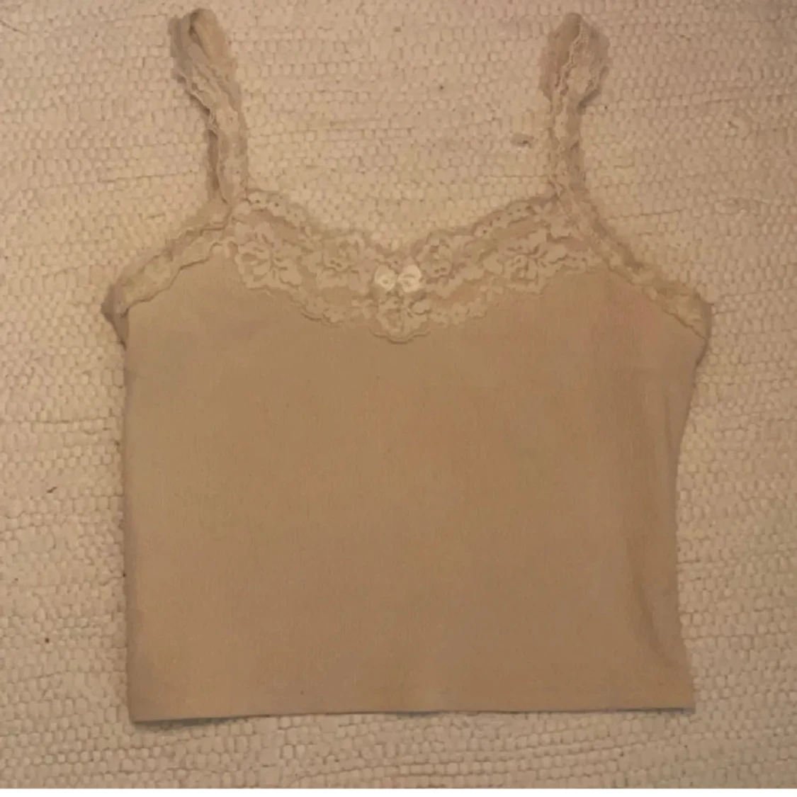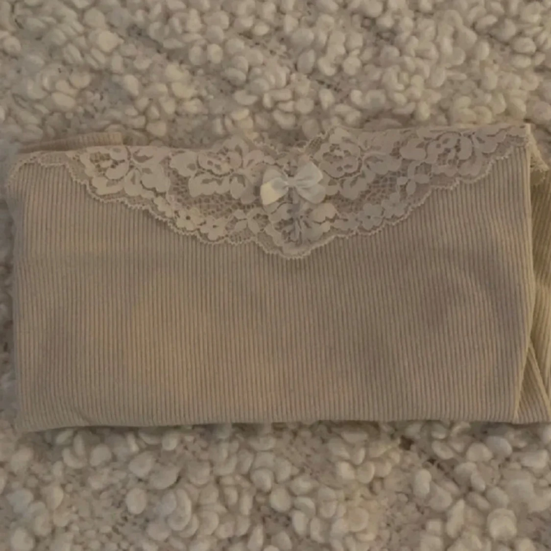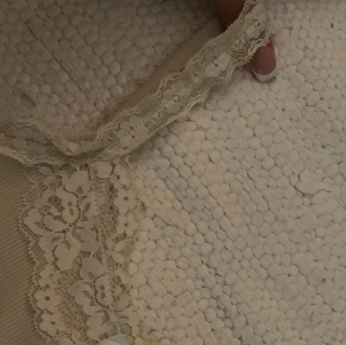 Jättefint krämvit spets linne med rosett som använts några gånger, men den har inga skador/ slitage.