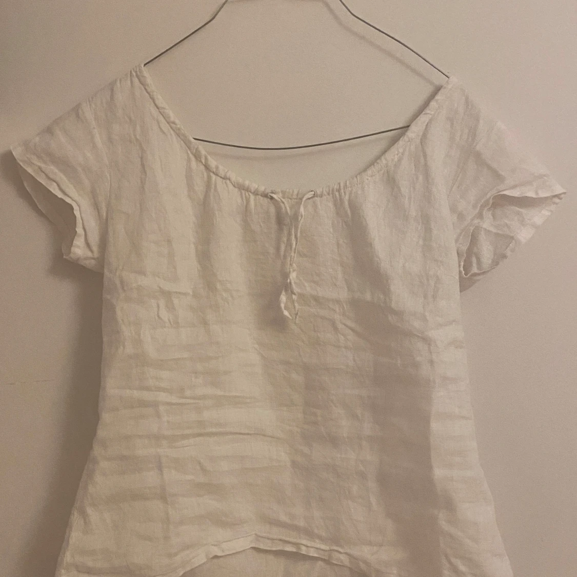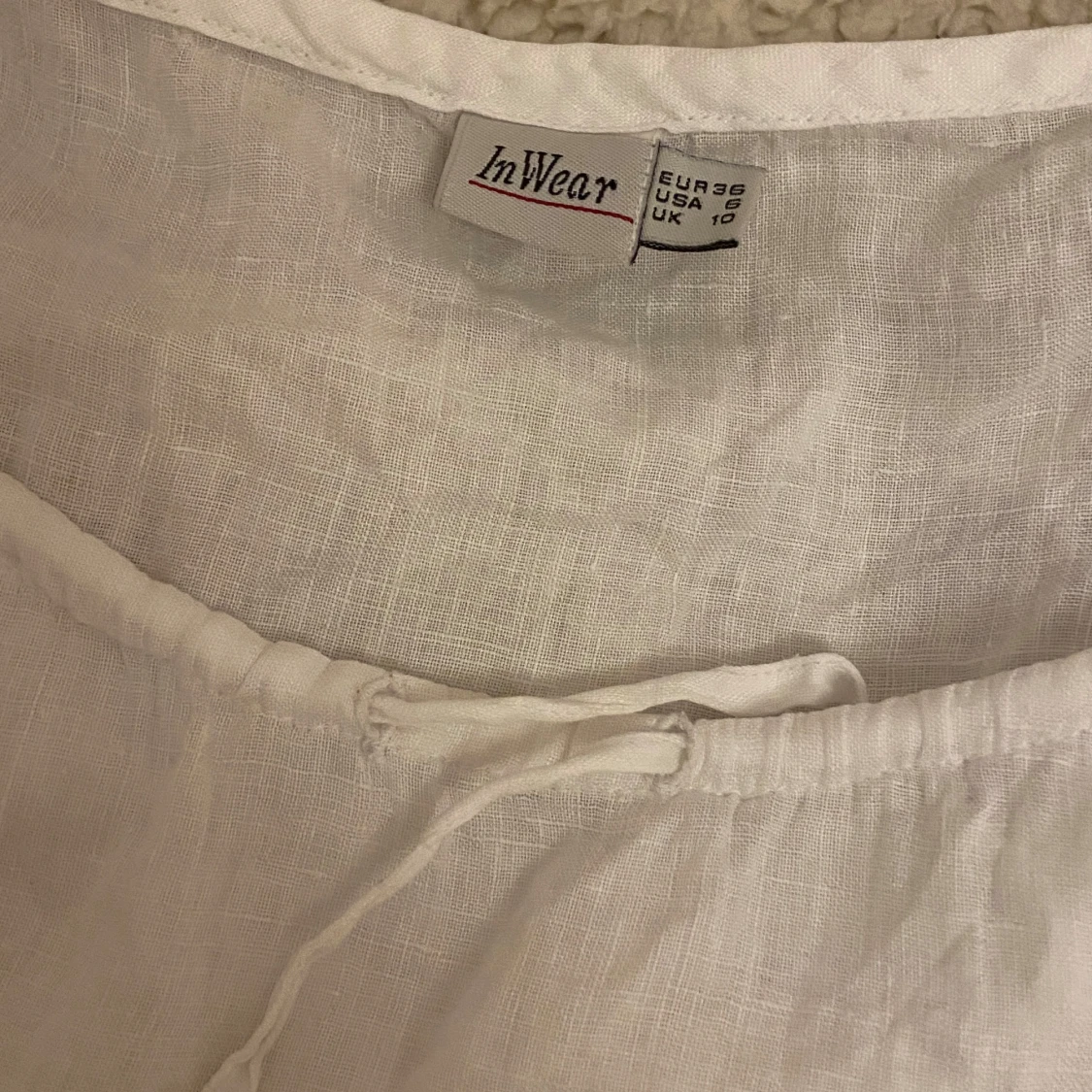 Säljer en luftig vit blus från InWear i linne. Blusen har korta ärmar och en knytning framtill vid halsen. Perfekt för varma dagar! Lite större i storlek men går att justera. 💞💞