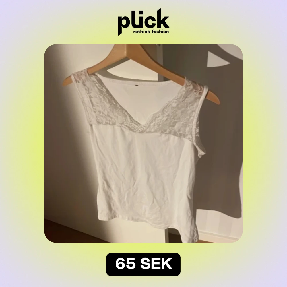 superfin vit spetstopp utan lapp, aldrig använd därför i toppen skick sitter som storlek S