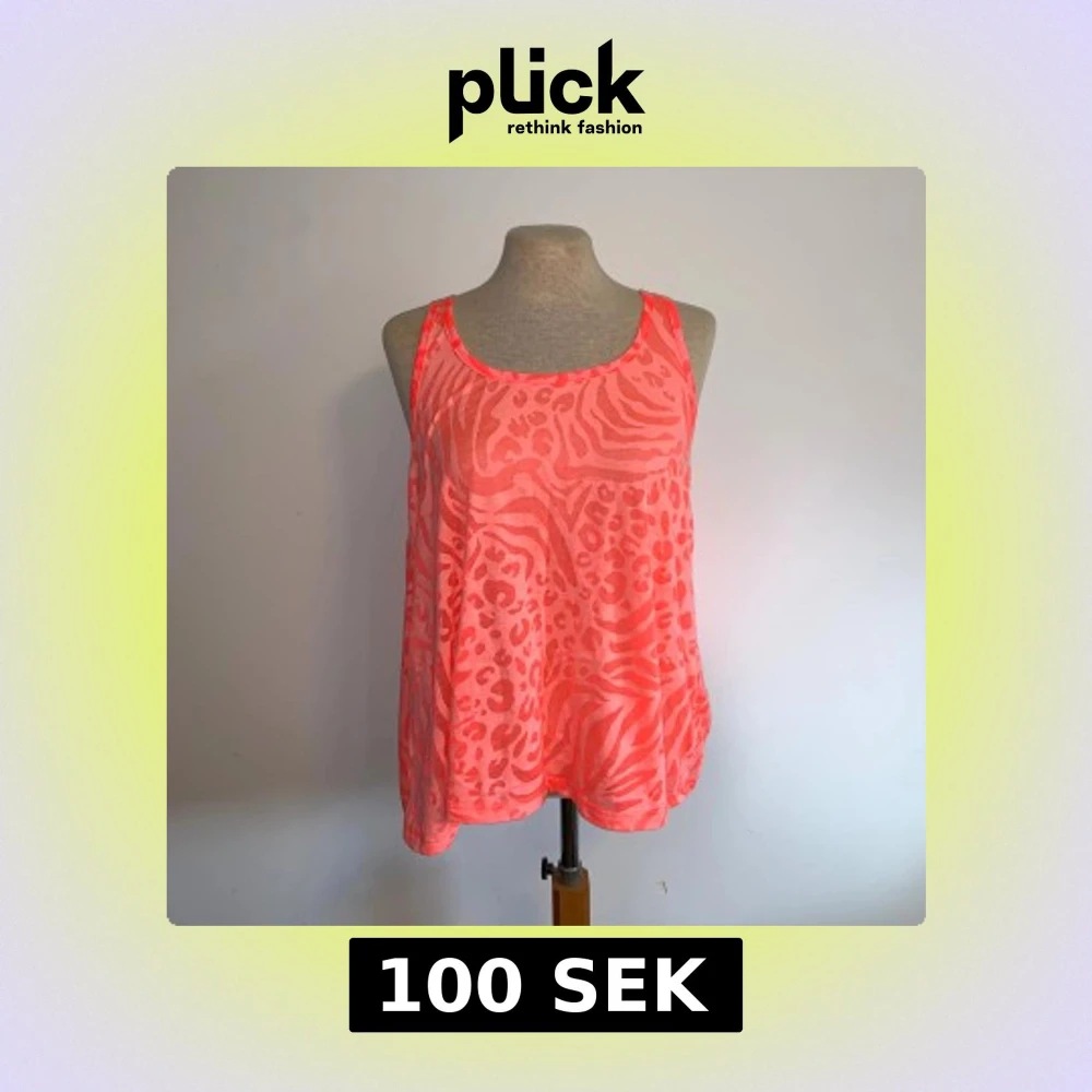 Två coola linnen i neonrosa och neongult med transparent känsla och djurmönster som mixar zebra och leopard. Modellen är lös och ärmlös med brottarrygg, perfekt för att sticka ut på sommaren eller till träning. Materialet känns lätt och luftigt. Ena är storlek S och andra är storlek M, men passformen är ganska lik bara längden som är annorlunda