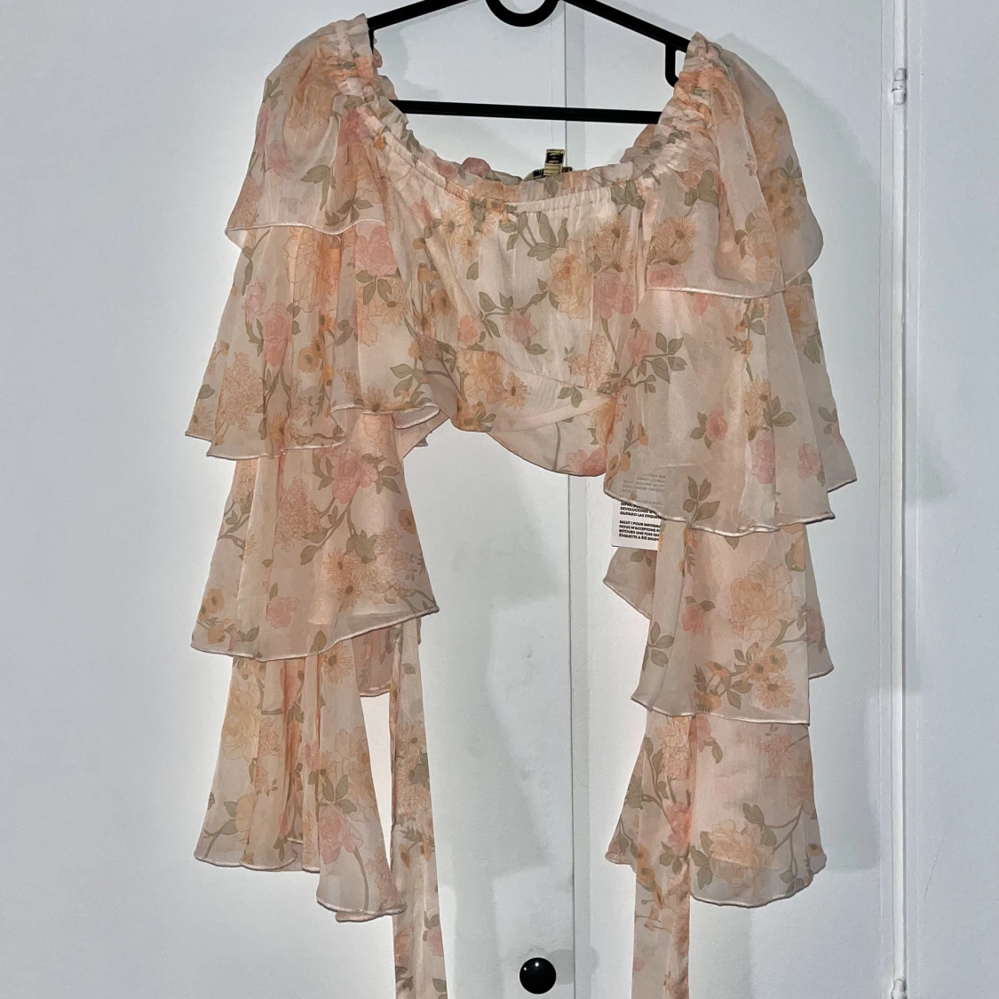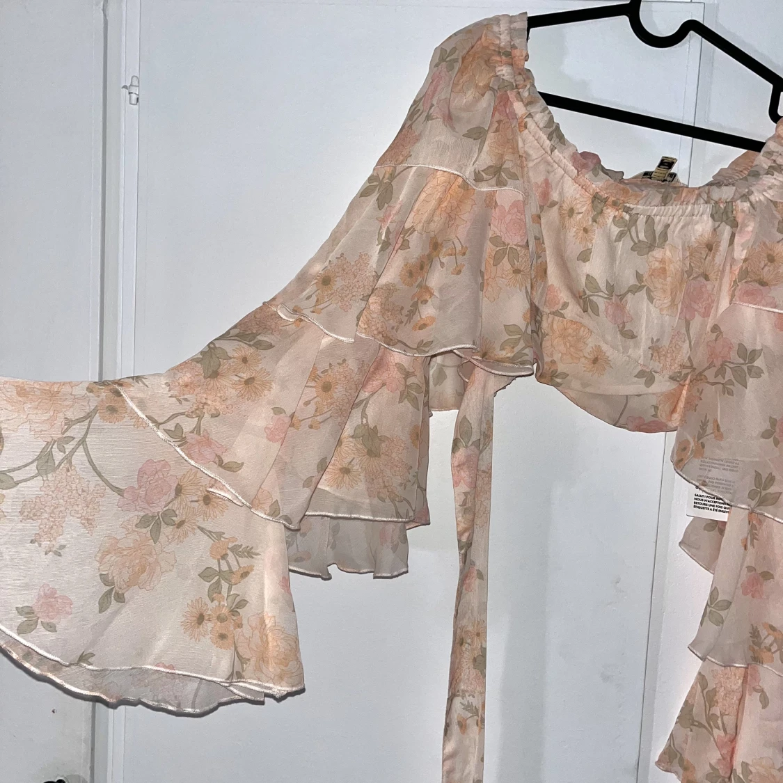 Superfin blommig volangtopp! Med knytning framtid eller baktill i mesh!đ aldrig anvĂ€nd