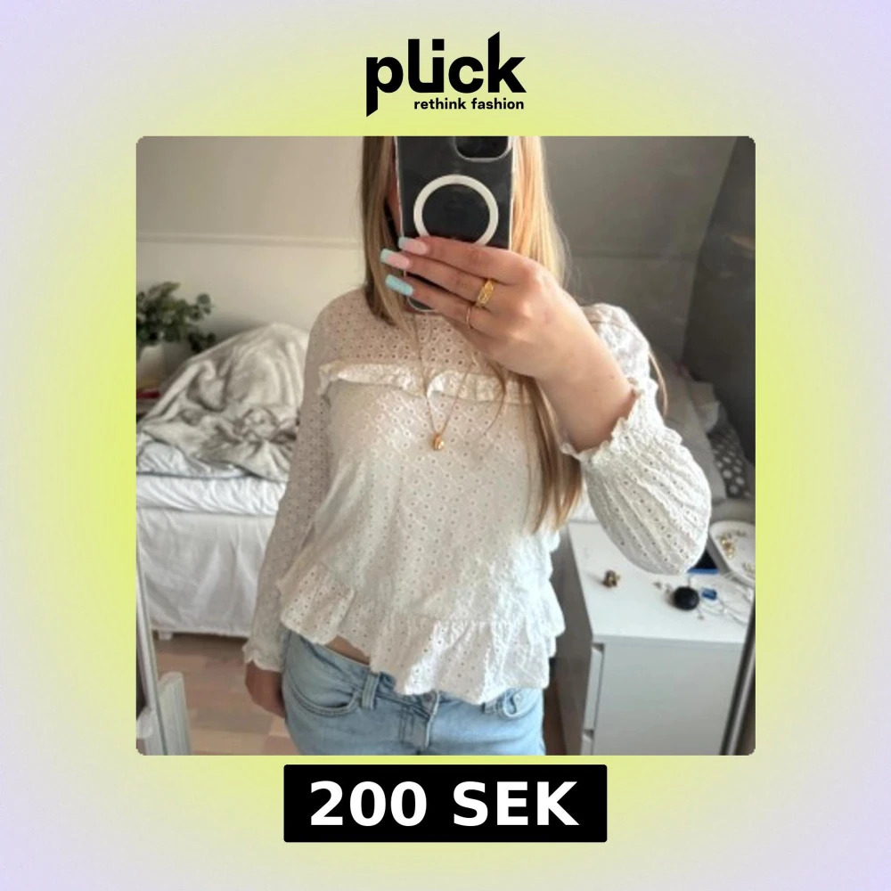 Säljer en söt vit blus från Reserved med broderade hålmönster och volangdetaljer. Blusen har långärmade ärmar med smock vid mudden och är gjord i mjuk bomull. Nästan aldrig använd, skriv för frågor/bilder!❣️❣️