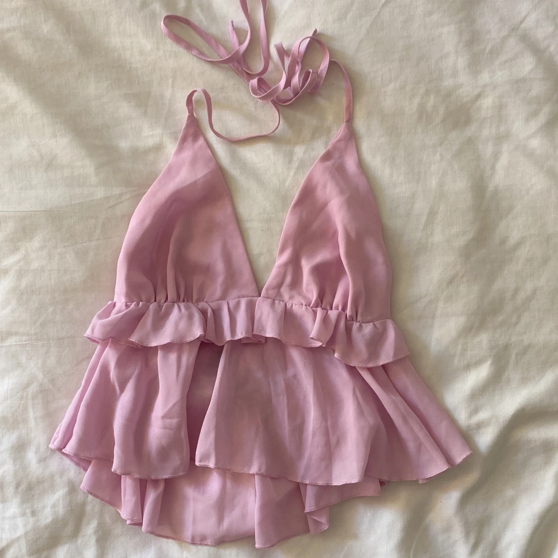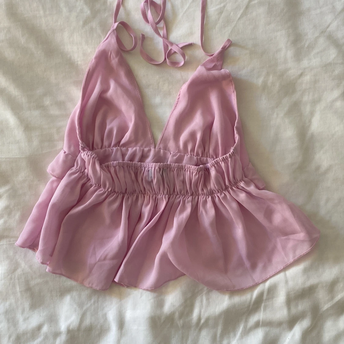 Supersöt stretchig tröja som man knyter runt halsen, med öppen rygg🙏💘endast använd 1 gång.