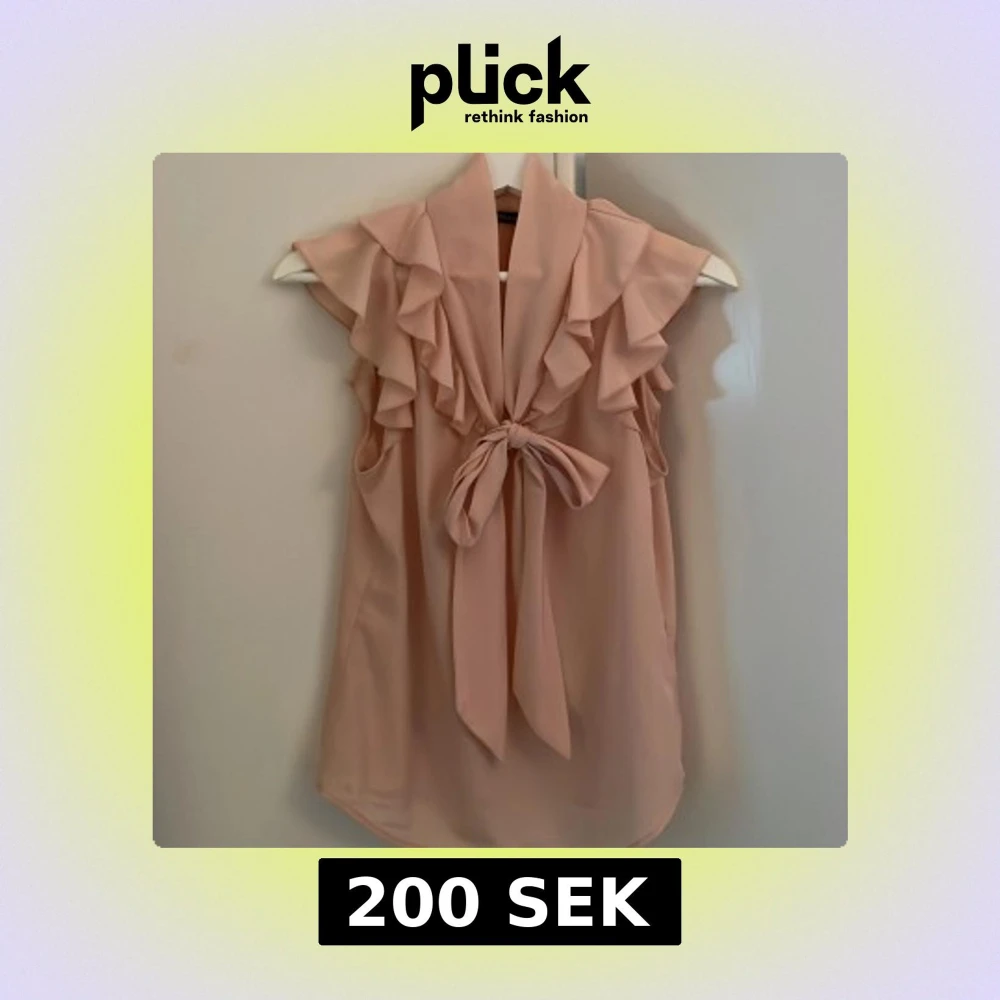 Supersöt ljusrosa blus från Morgan med volangdetaljer vid axlarna och en stor knytrosett framtill. Ärmlös modell i ett lätt, flowy material som ger en romantisk vibe. Perfekt för dig som gillar feminina detaljer och vill sticka ut lite extra.
