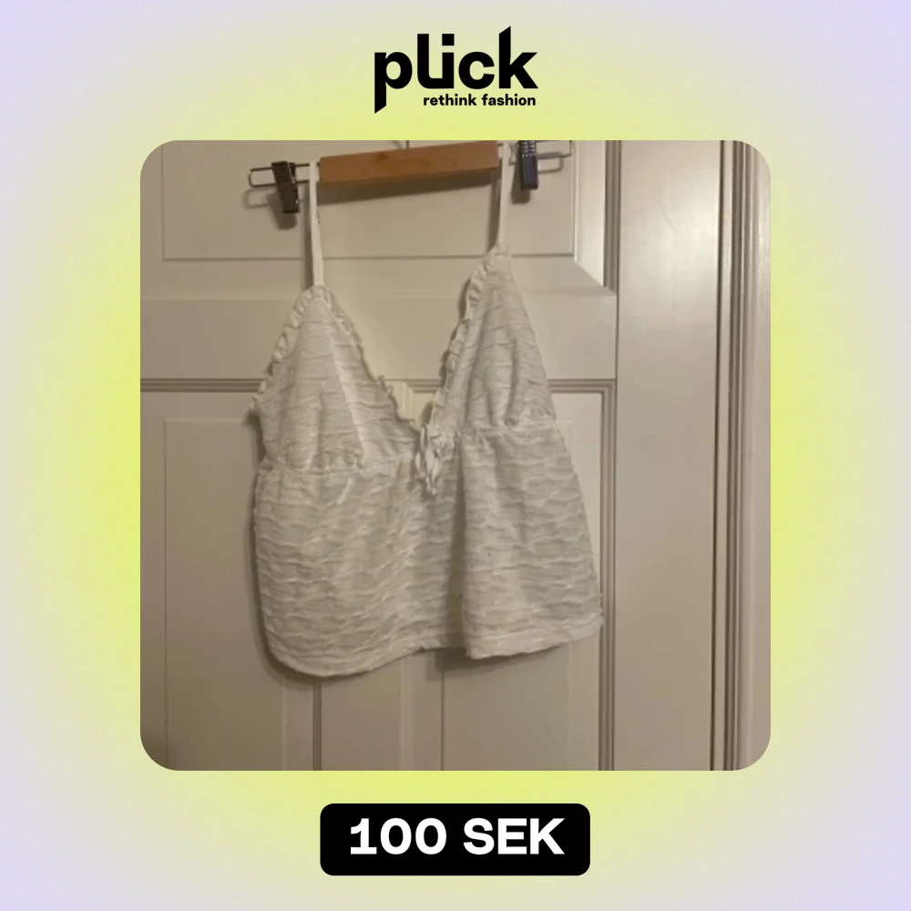 Säljer en söt vit ärmlös topp med smala axelband och knytning framtill. Toppen har en lätt textur och är perfekt för sommaren. Den är i bra skick och passar både till vardags och fest.