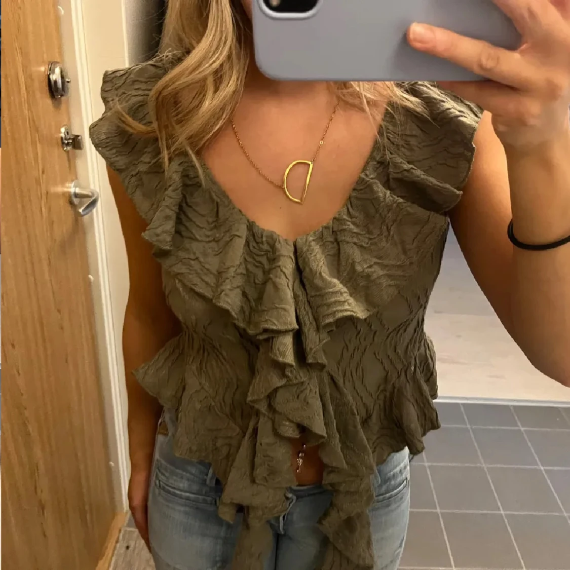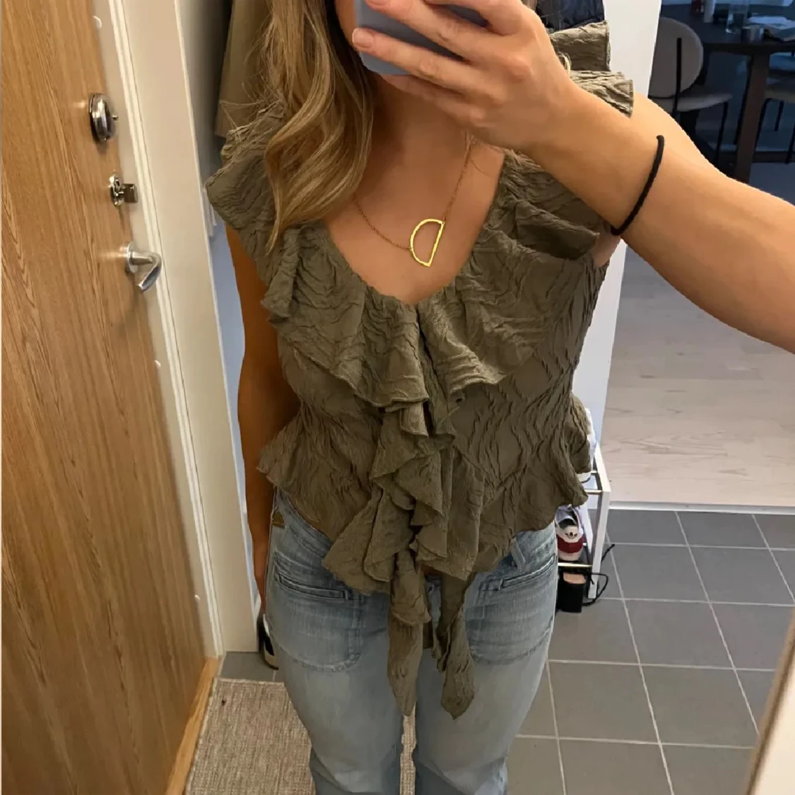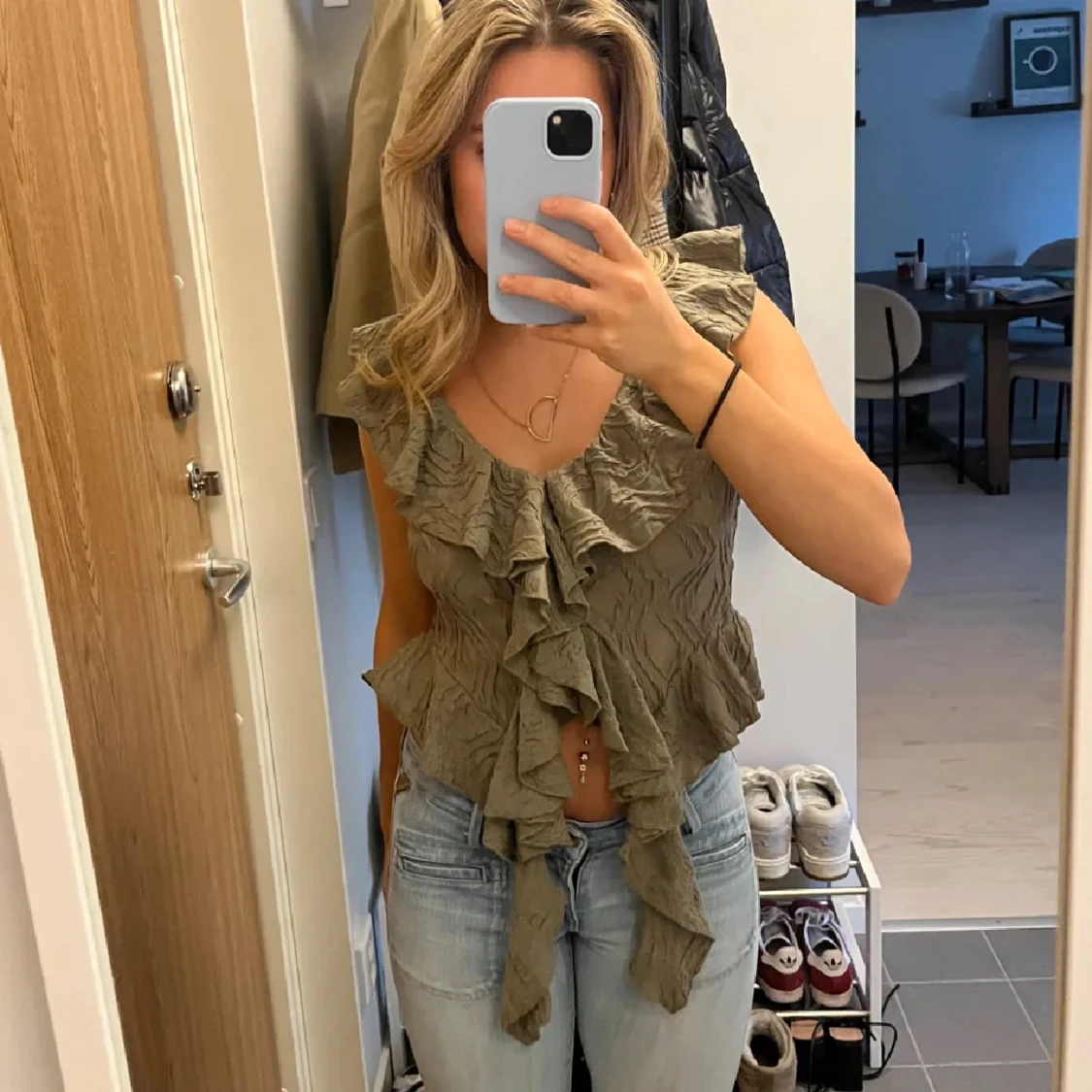 Jättefin volangtopp från zara. Knappt använd så i fint skick. Pris går att diskutera vid snabb affär