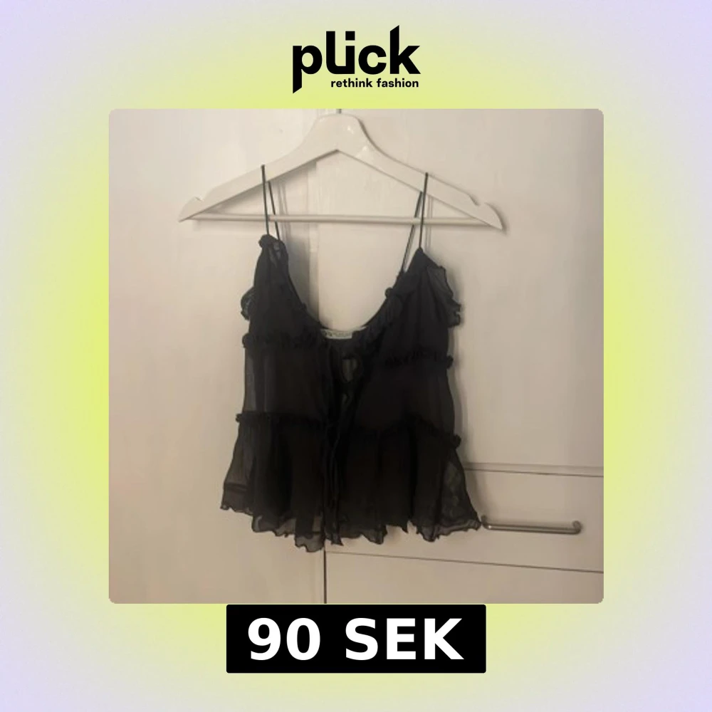 Supersöt svart linnetopp från Zara med tunna axelband och volangdetaljer. Jätte bra skick. Passar perfekt nu till sommaren.