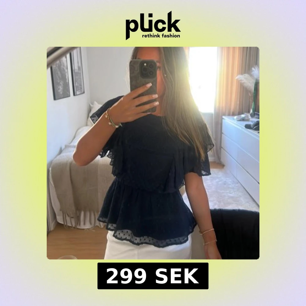 Säljer min supersöt mörkblå blus med volanger i storlek XS från Vero Moda som inte längre säljs💕Perfekt att styla med jeans eller kjol. Köpt förra året och därav säljs inte längre och köptes för 399kr.