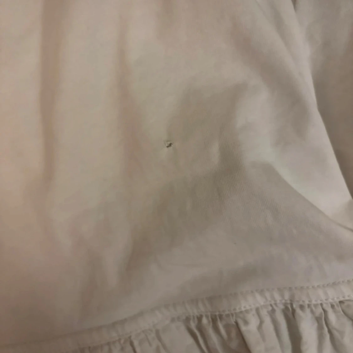 Säljer en söt vit topp med volanger från Zara i st s. Har ett hål men är absolut inget man tänker på💕