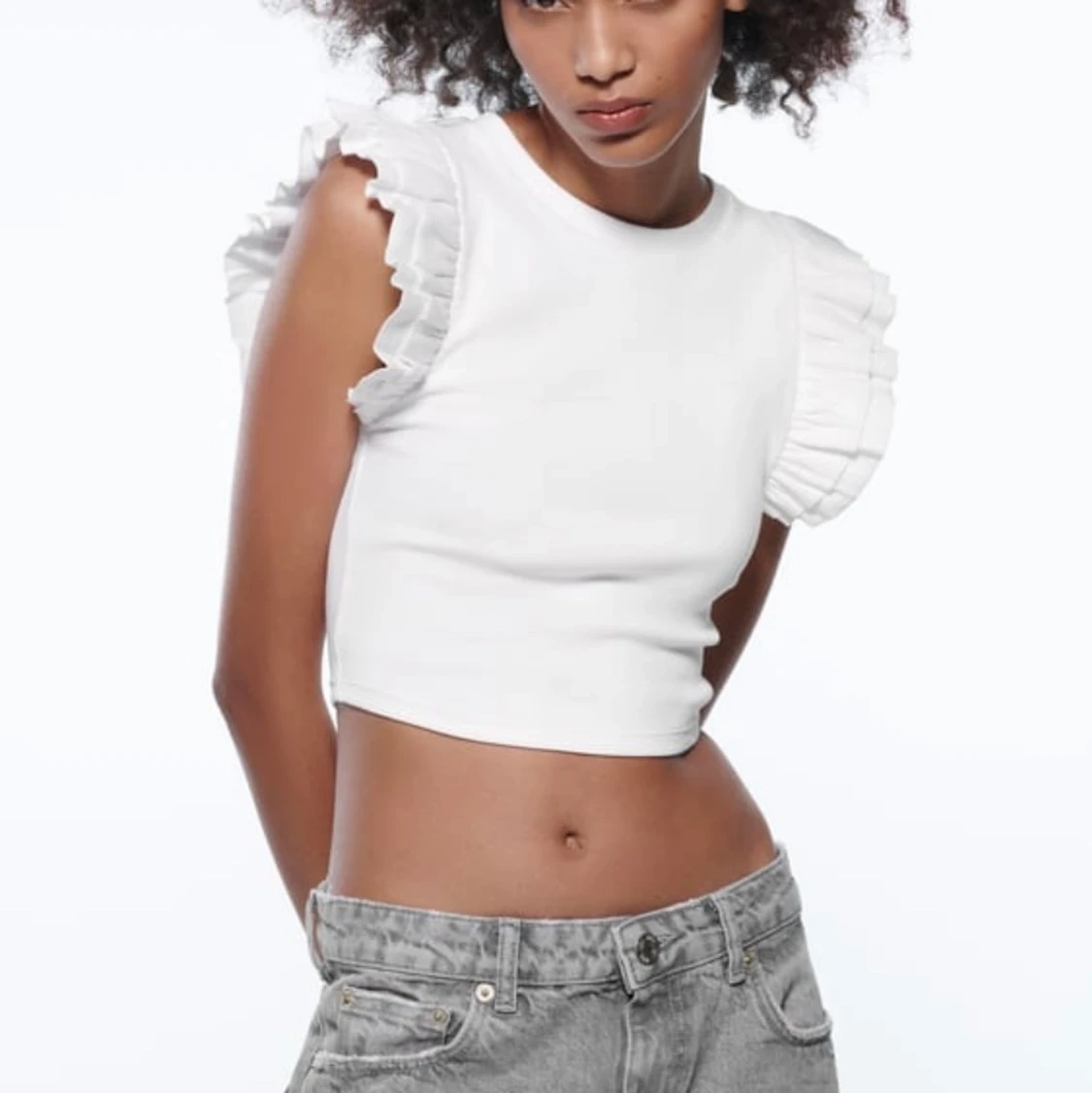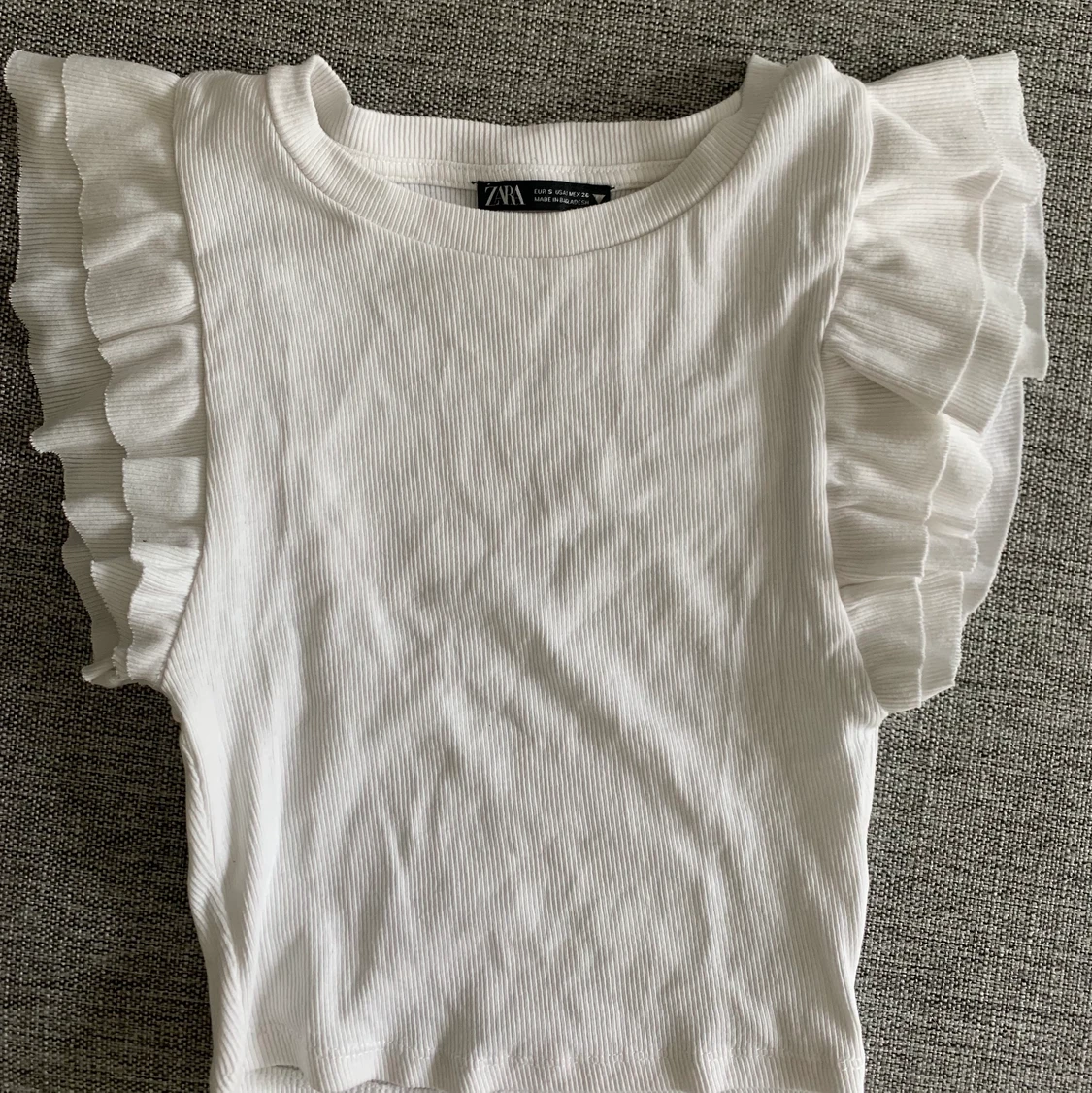 Vit zara topp med volanger på armarna. Aldrig kommit till användning. Köparen står för frakt.