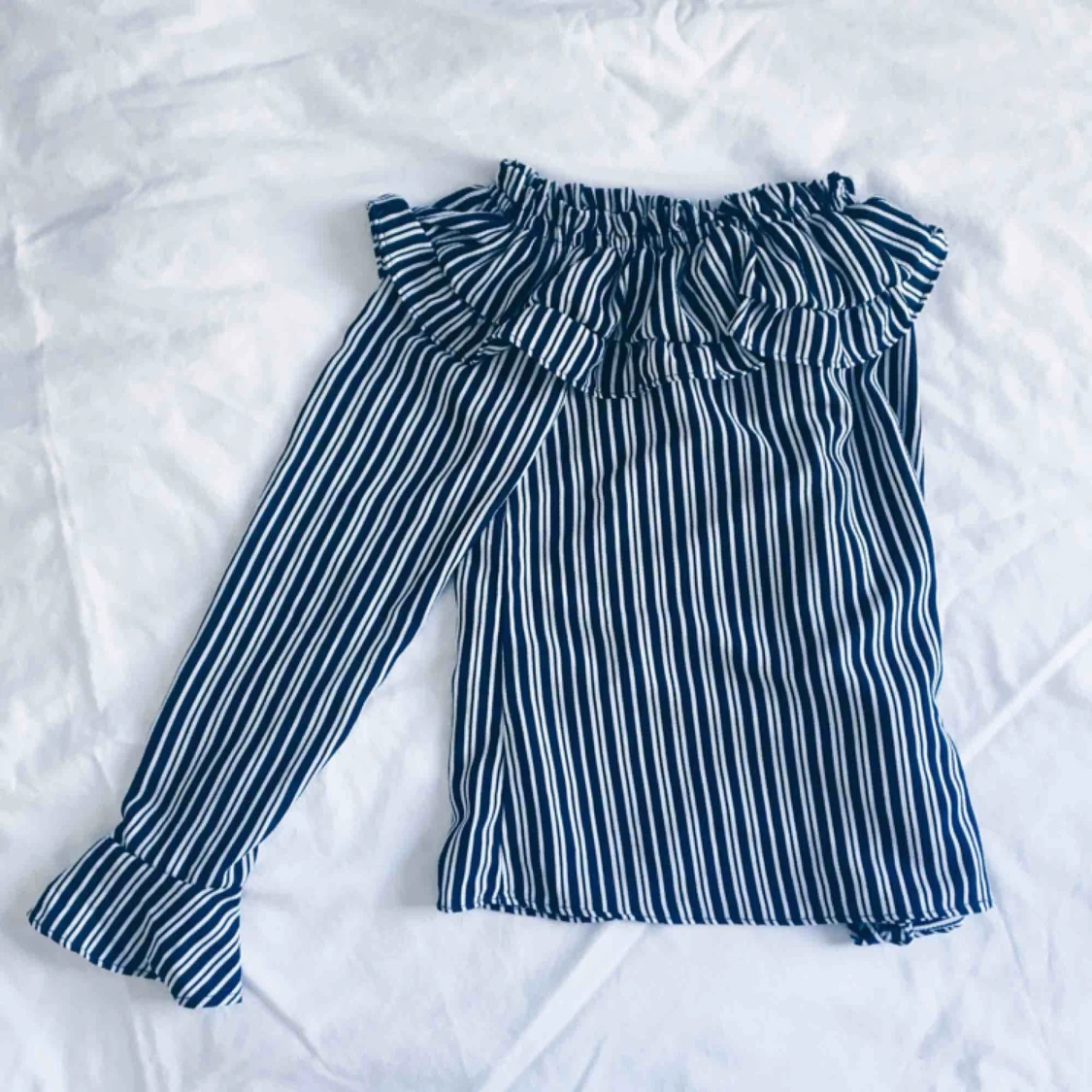 Det är med sorg i hjärtat som denna skickas vidare! Den finaste tröjan jag skådat! Bara axlar, volanger och ett fint ärmslut! Tyvärr är den för tajt över armarna för att jag ska kunna röra mig bekvämt