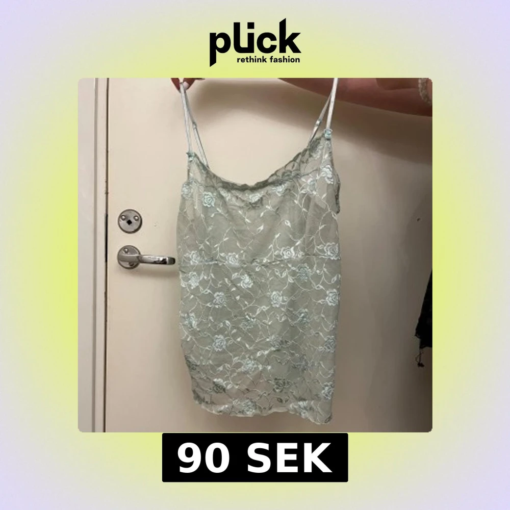 Säljer ett mintgrönt linne med vacker spetsdetalj. Linnet har tunna justerbara axelband och ett blommigt mönster i spetsen. Perfekt för en somrig söt look. På axelbanden så är det små söta rosetter💞Hittade ej någon lapp!