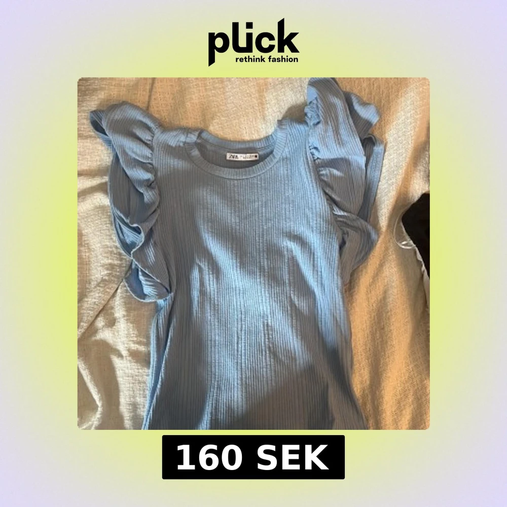 Säljer denna super fina blåa Zara toppen med volanger! Den är i storlek S och är aldrig använd, ny utan prislapp!🥰