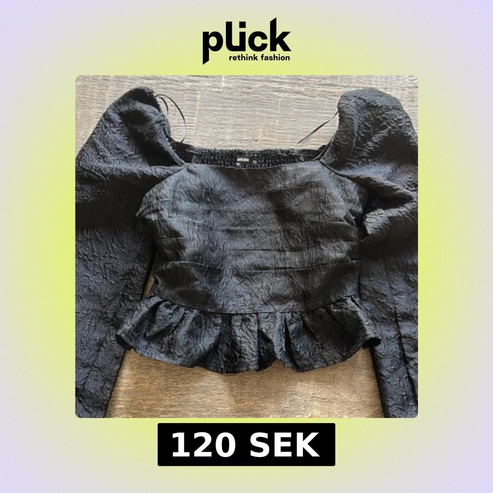 Supersnygg svart blus från BikBok med puffiga långärmar och volang nertill🤍använd 1-2 gånger