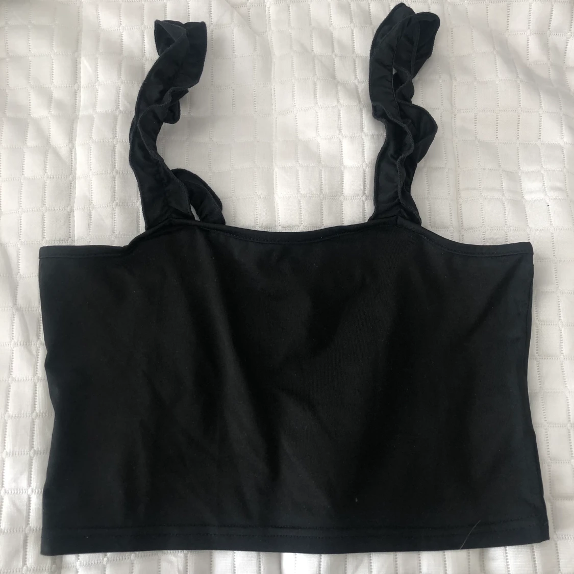 Söt sommar topp med volanger frĂ„n Shein! Ăr i storlek S men passar Ă€ven M. AnvĂ€nd nĂ„gra gĂ„nger, inga defekterđ