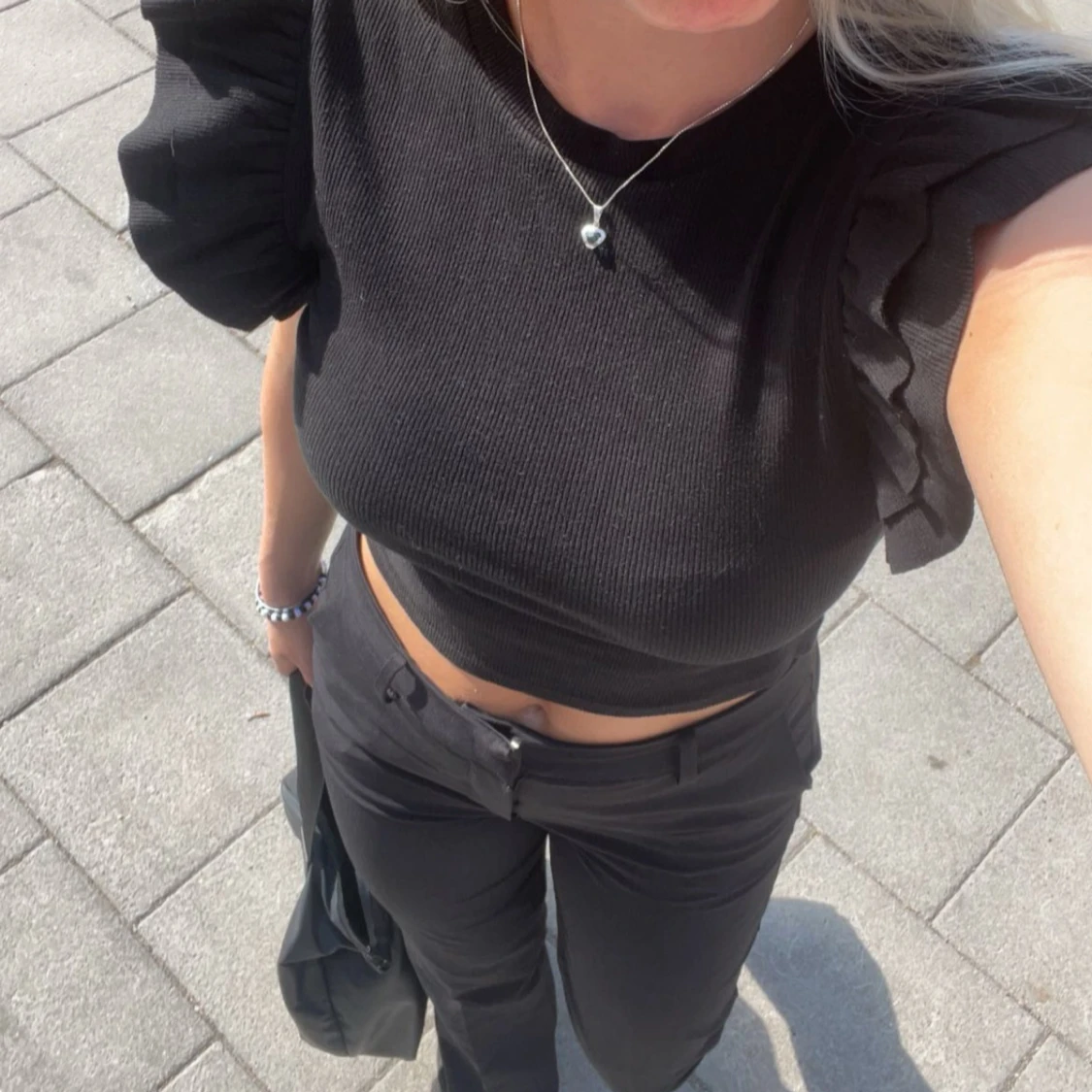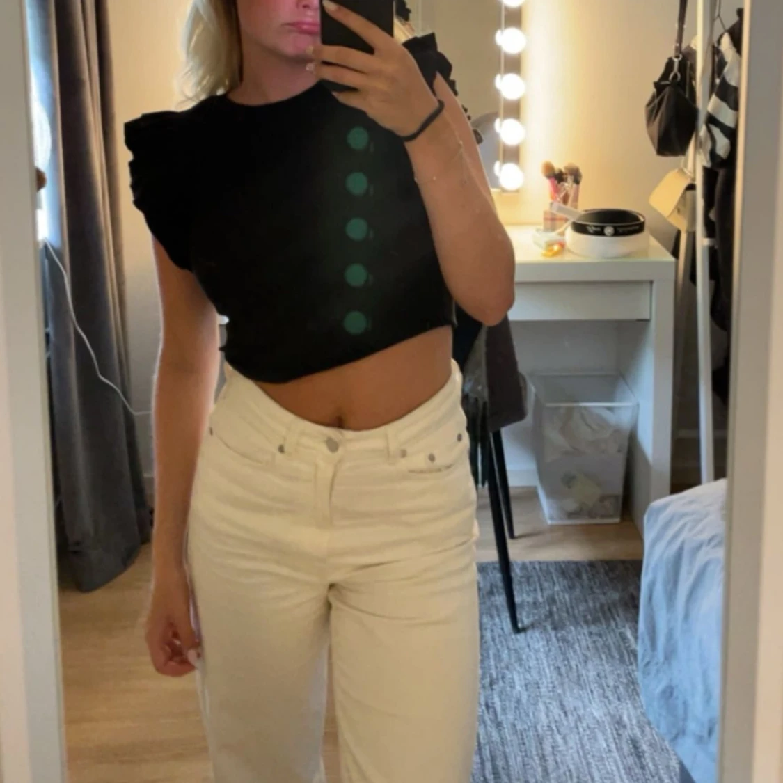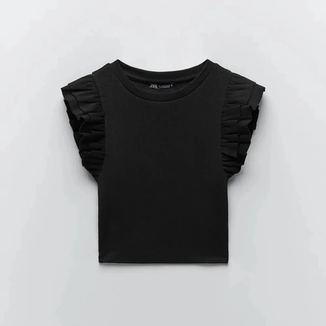 Svart volangtopp från zara. Storlek S och mycket sparsamt använd!!🖤