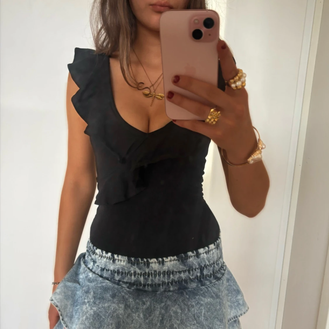 Såå snygg vringad volangbody! Jag är 168 och det är mina bilder, köp via köp nu direkt eller Swish, kvar tills markerad som såld 💖