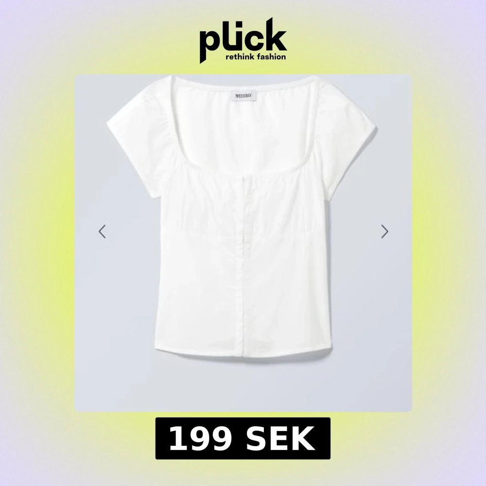 Säljer en stilren vit topp från Weekday med fyrkantig ringning och korta ärmar. Toppen har en enkel och fräsch design, perfekt att matcha med jeans eller kjol. Tillverkad i mjukt bomullsmaterial.