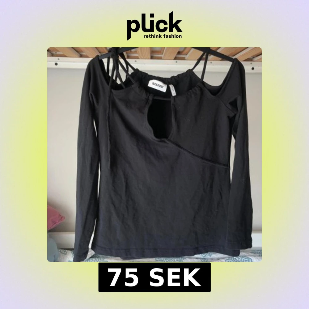 Svart långärmad topp från Weekday med cool cut out-detalj framtill och smala axelband som ger en unik look. Toppen har en asymmetrisk öppning vid halsen och är gjord i mjuk bomull.