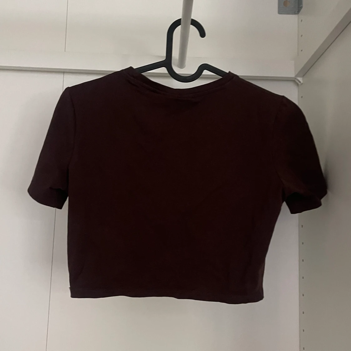 Brun tajt croppad t-shirt från Weekday. Jättefint skick. Storlek S. 40kr