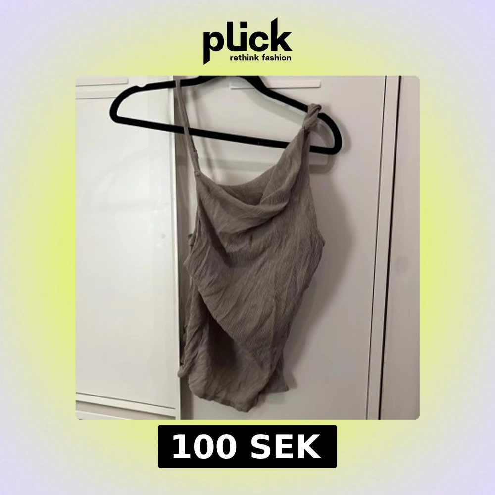 Säljer en beige linnetopp från Weekday i storlek S. Toppen har en snygg omlott-design med draperad framsida och smala axelband, varav det ena är knutet. Materialet är lätt och har en skrynklig struktur som ger en cool look.