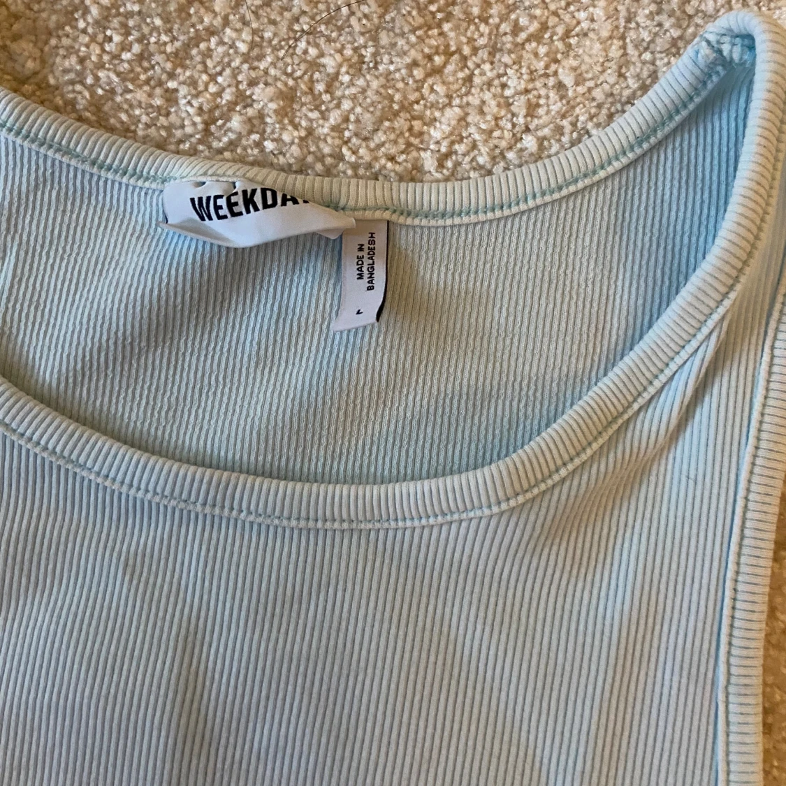 Sött babyblått linne från Weekday 🩵Storlek L. Lite croppat ❄️Säljer billigt då det är använt och kan ha blivit lite lite blekt under ärmarna. Dock inga fläckar eller hål och är väldigt fräscht! 🌝Kan användas till träning eller hemma-mys om man vill 🩵💙