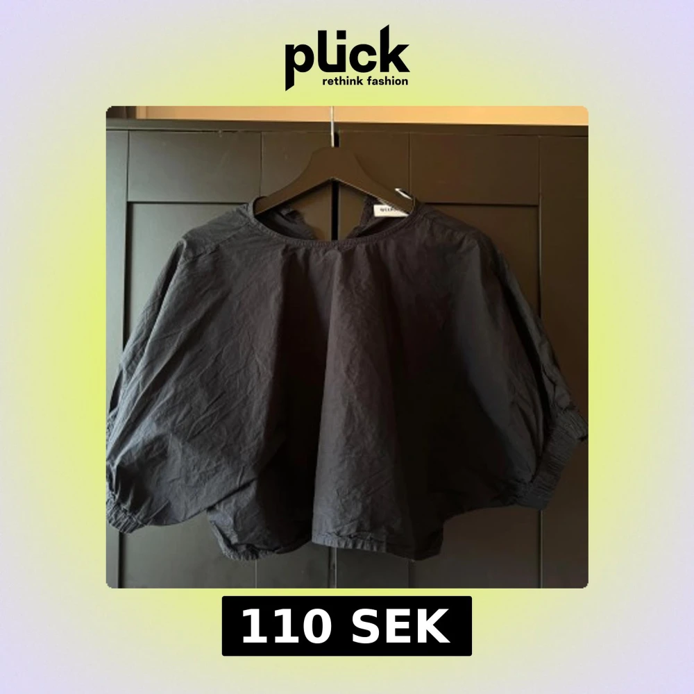 Säljer en svart croppad blus från Weekday med vida, korta ärmar och rund halsringning. Perfekt för en trendig och avslappnad stil. Tunn och luftig modell som passar till många outfits.