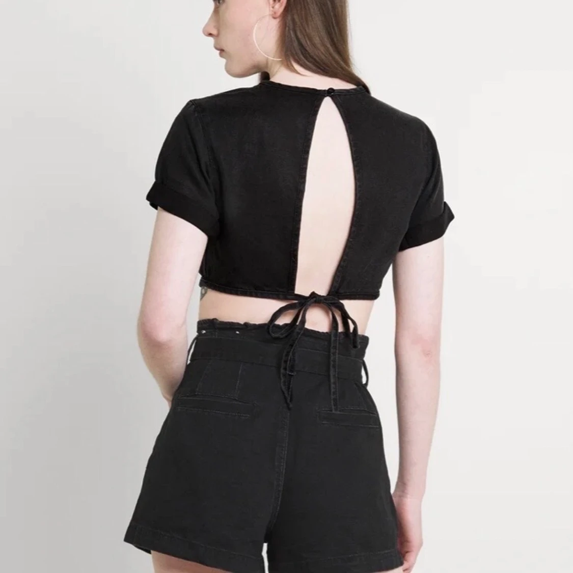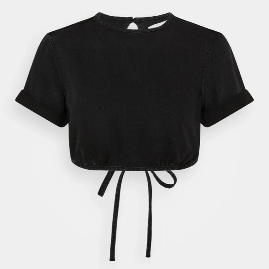 Så fin crop top från weekday i svart lite washed-out material. Bara använd en gång för bild.