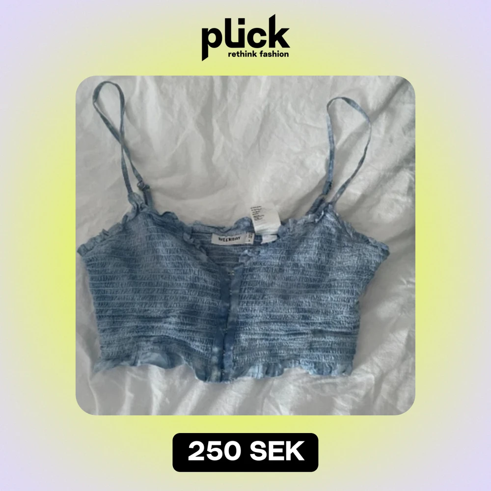 Väldigt SNYGG somrig upp i ljusblå färg köpt från weekday och använts fåtal gånger. Passar till en vit kjol eller linnebyxor