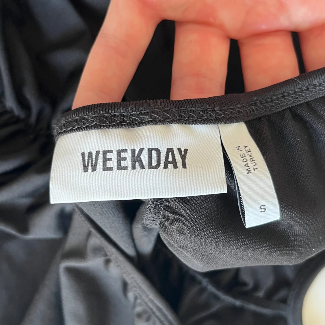Svart fest topp från weekday. Inte använd super mycket så i bra skick. Skicka ett meddelande om du har fler frågor!🥰