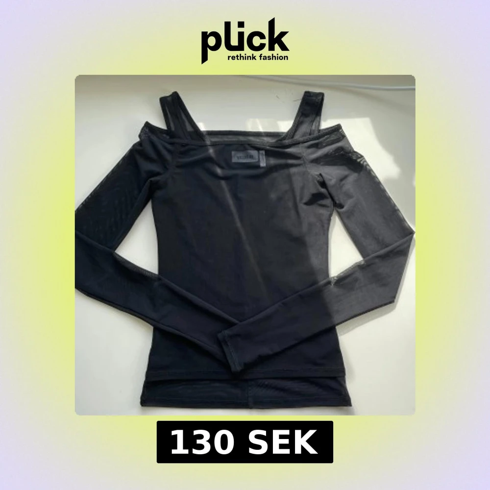 Säljer en svart mesh topp från Weekday. Den är offshoulder och har även ett inbyggt linne i samma tyg. Skriv om ni har frågor!!🖤