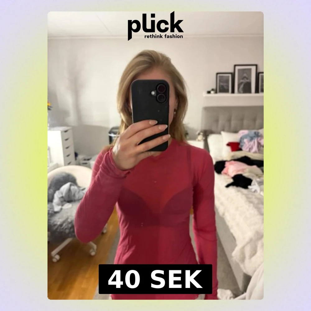 Säljer en tunn och transparent rosa mesh polotopp från Weekday. Toppen har lång ärm, rund hals och vågiga kanter vid ärmslut och nederkant. Lite intimissimi inspirerad men lite hårdare material.