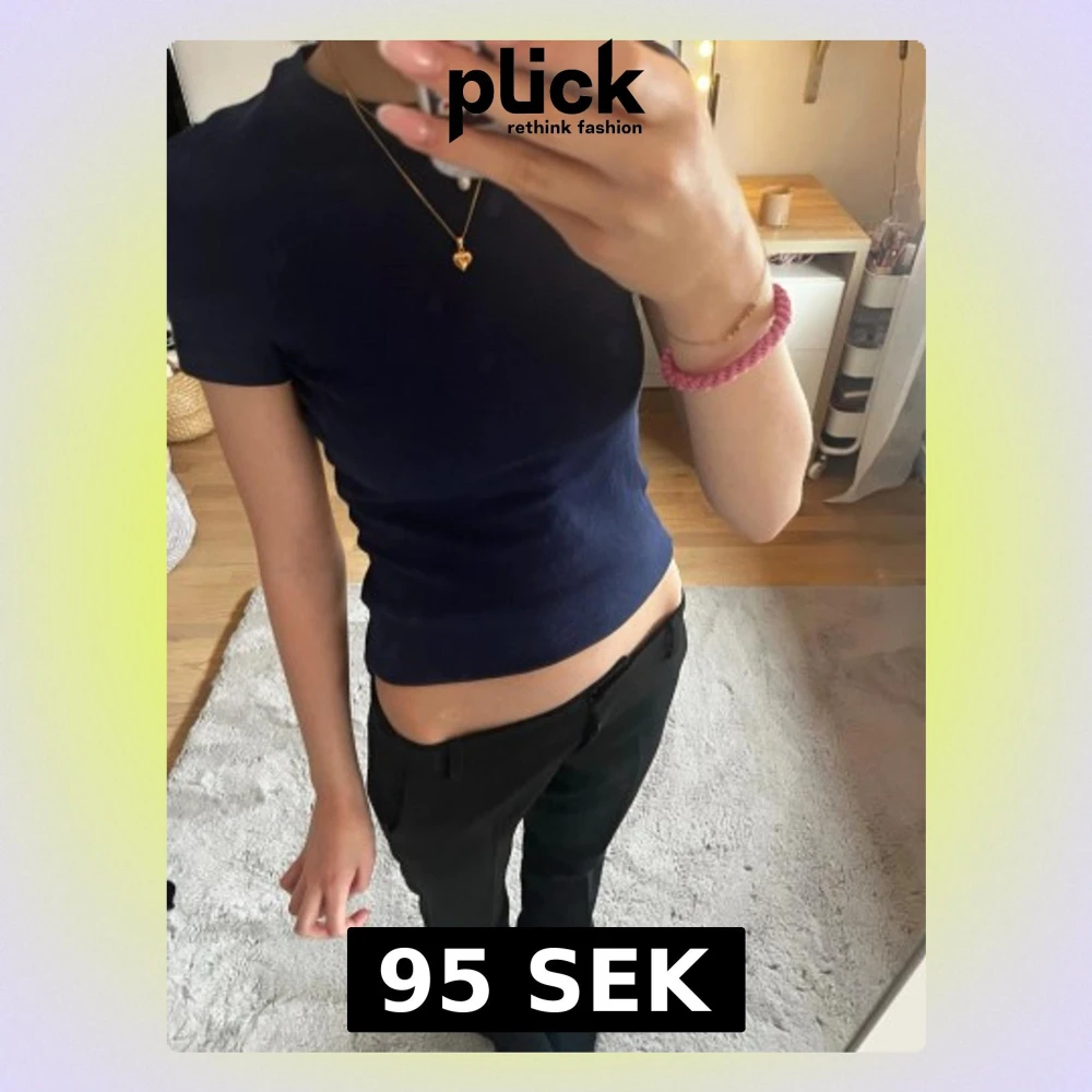 Säljer en mörkblå ribbad topp med korta ärmar och stretchigt material💗
