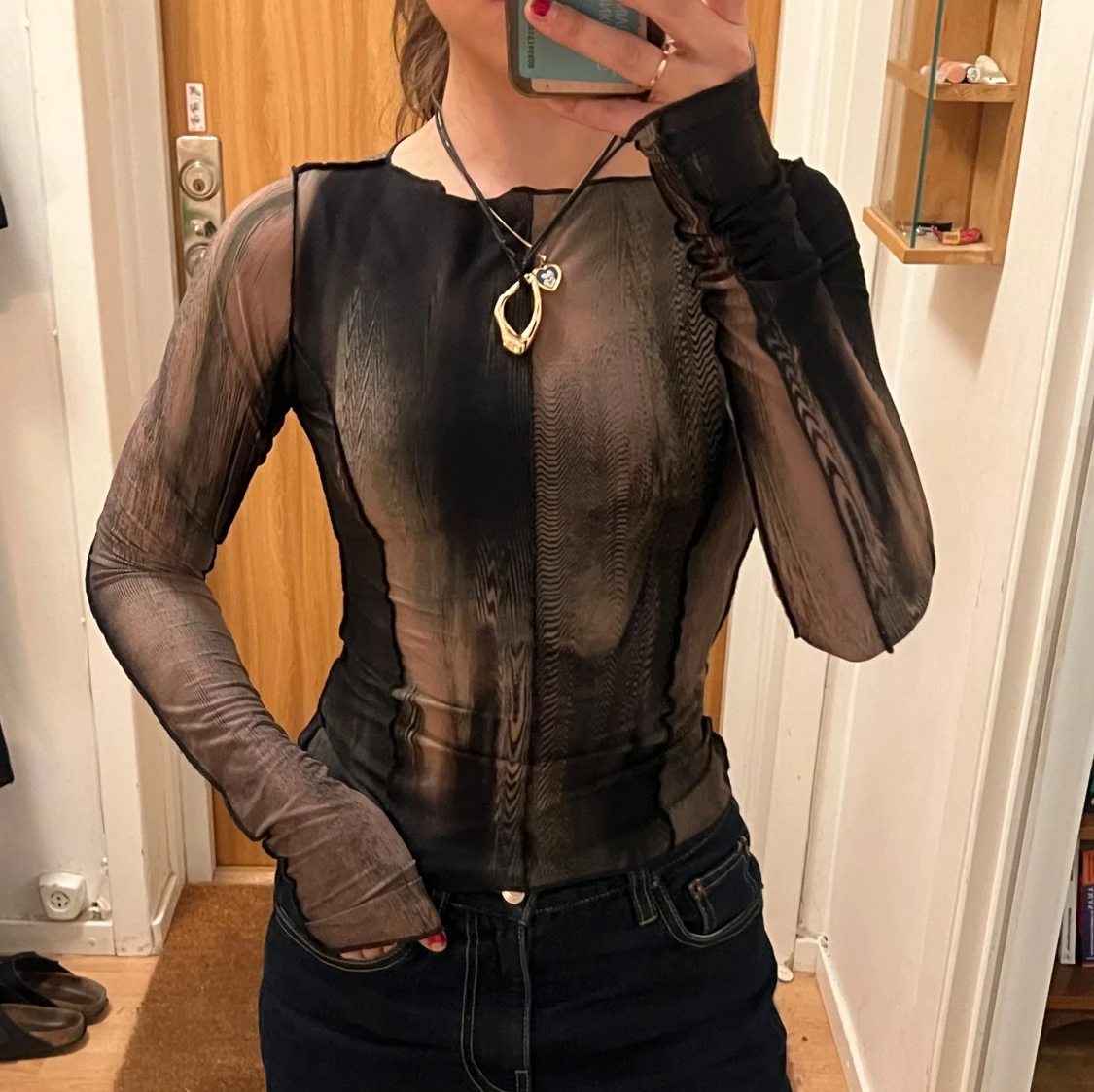 Knappt använd topp från Weekday med mönster. Lätt transparent, stretchigt material!