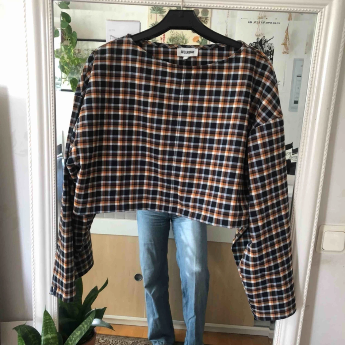 Snygg och svårfotad tröja, strl XS från Weekday! Uppsydd av mig, slutar perfekt vid byxlinningen/strax under. Använd typ två gånger, toppskick! Nypris runt 450kr. Köpare står för frakt!