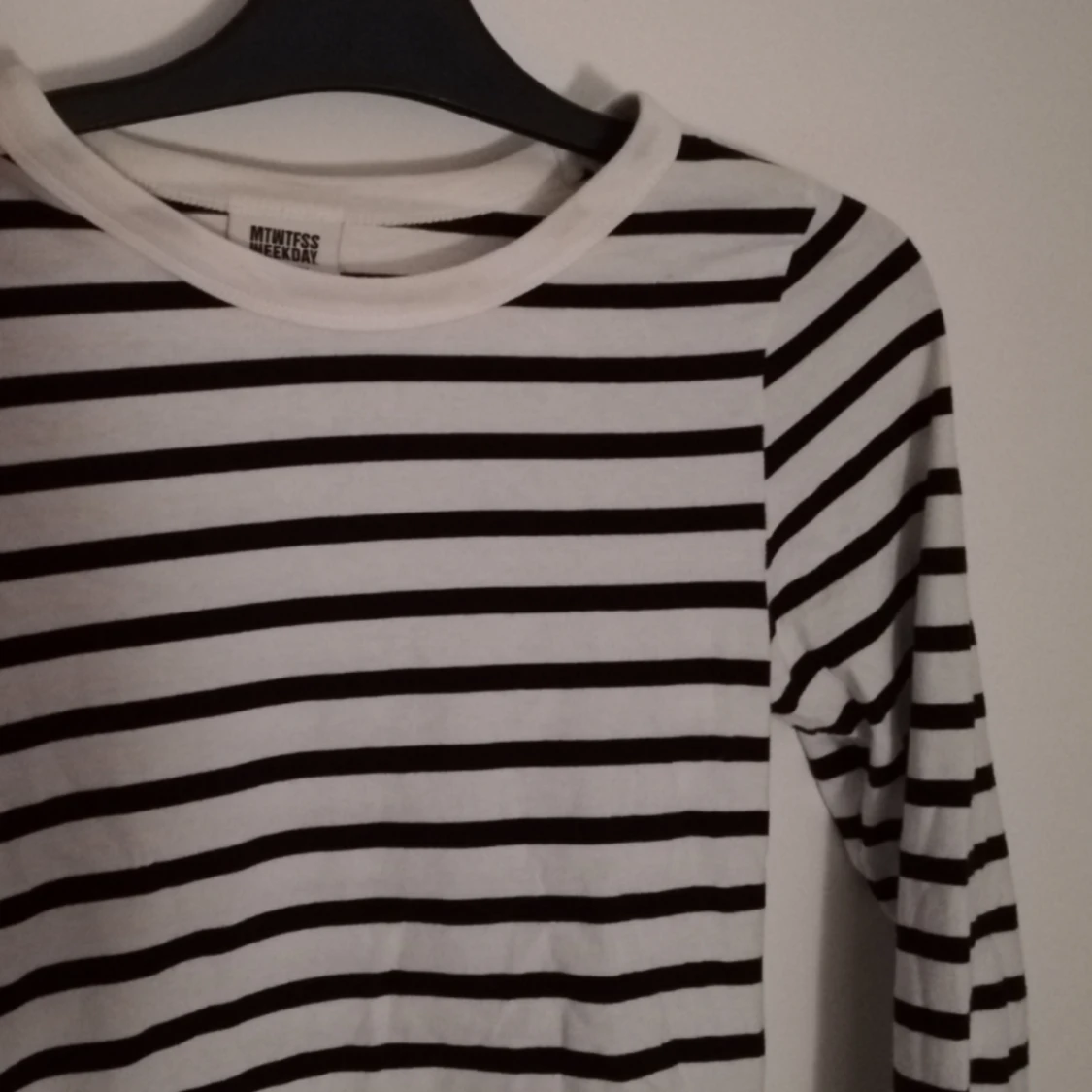 Supergo långärmad svartvit tröja från Weekday! Köpt här på Plick, men säljer vidare då den tyvärr inte passade mig! Frakten ingår i priset ✨
