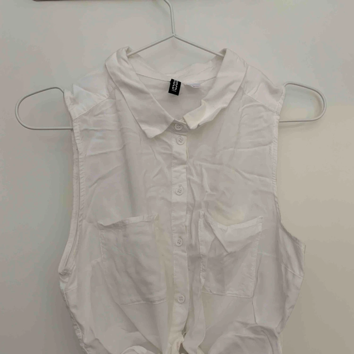 Kort vit knytblus utan ärmar. Köparen står för porto.