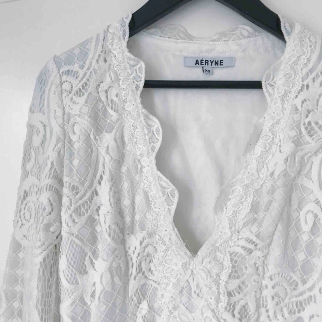 Figurnära topp i spets! Sann i storlek och trumpetärmar
