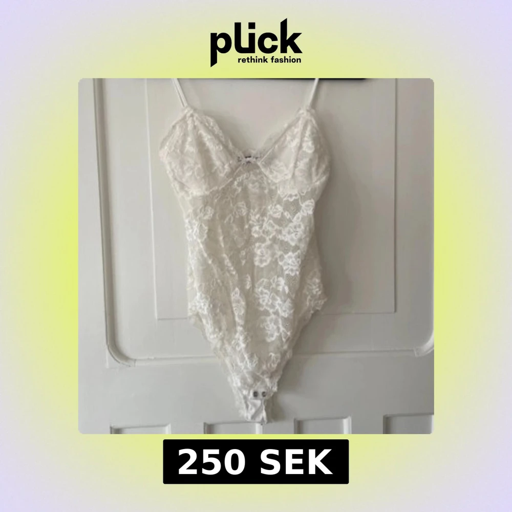 Säljer en elegant vit spetsbody med smala axelband och vacker spetsdesign. Perfekt för att lägga till en romantisk touch till din outfit. 💕storlek M men passar mer som S