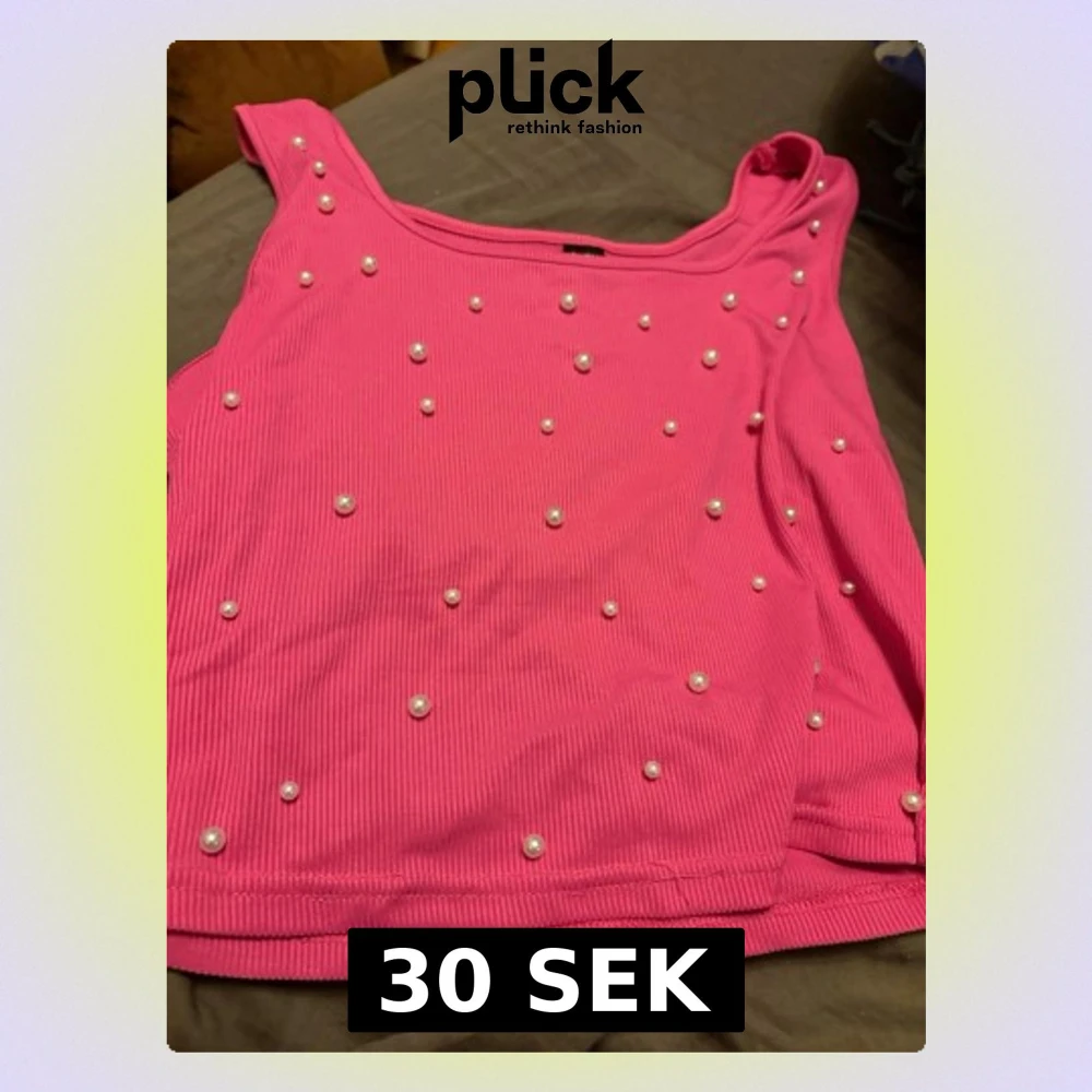 Snygg rosa linnetopp med ribbad struktur och dekorativa pärlor över hela framsidan. Toppen är ärmlös och har en croppad passform som passar perfekt till höga jeans eller kjol. Perfekt för dig som vill sticka ut lite extra.