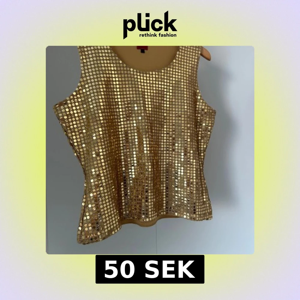 Säljer en glittrig guldtop med paljetter. Den är ärmlös och perfekt för en festlig kväll. Toppen har en rund halsringning och ger en glamorös look.