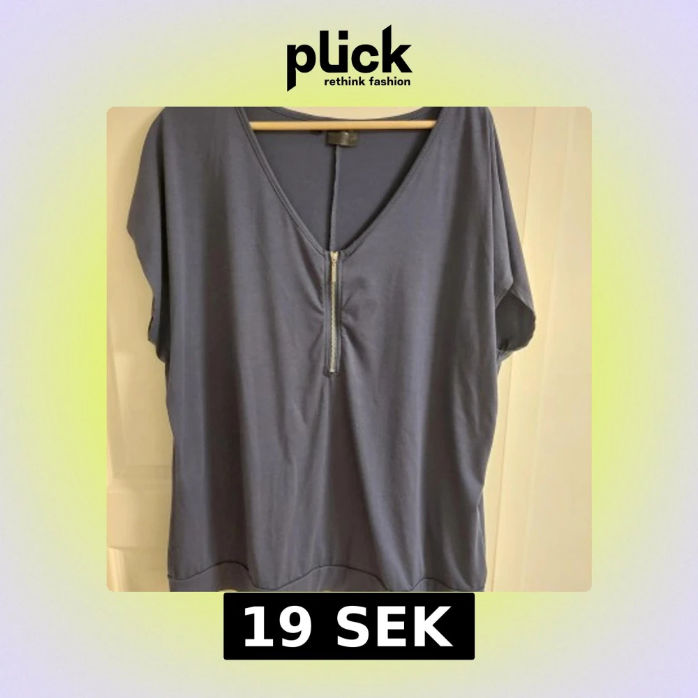 Snygg blå topp med v-ringning och dragkedja framtill. Perfekt för en avslappnad stil. Bra skick, dock lite nopprig. Är typ storlek XL