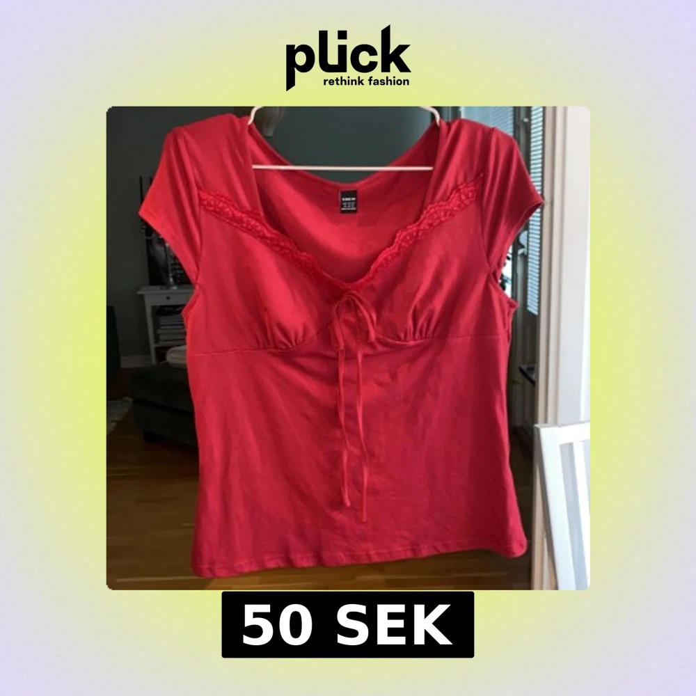 Snygg röd topp med spetsdetaljer och knyt framtill. Toppen har korta ärmar och en feminin passform. Perfekt för att lägga till en färgklick i garderoben.