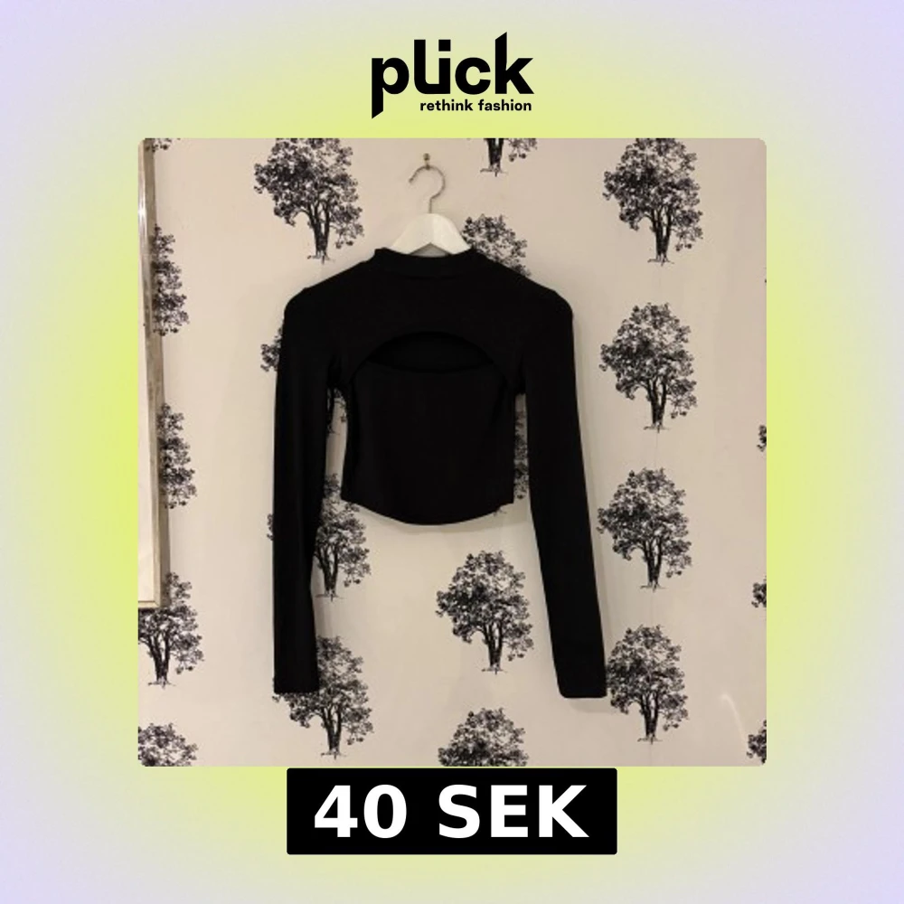 Svart croppad topp med lång ärm och cool cut-out detalj på ryggen. Toppen har en tight passform och är tillverkad i ett ribbat material som ger en snygg struktur. Perfekt för dig som vill ha en trendig och edgy look.