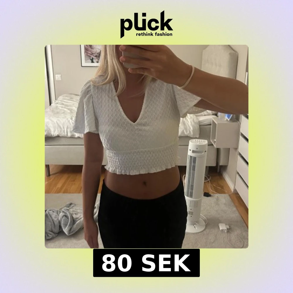 Superfin vit croppad blus med v-ringning och korta, vida ärmar. Toppen är från Pigalle i storlek xs och är i mycket bra skick.