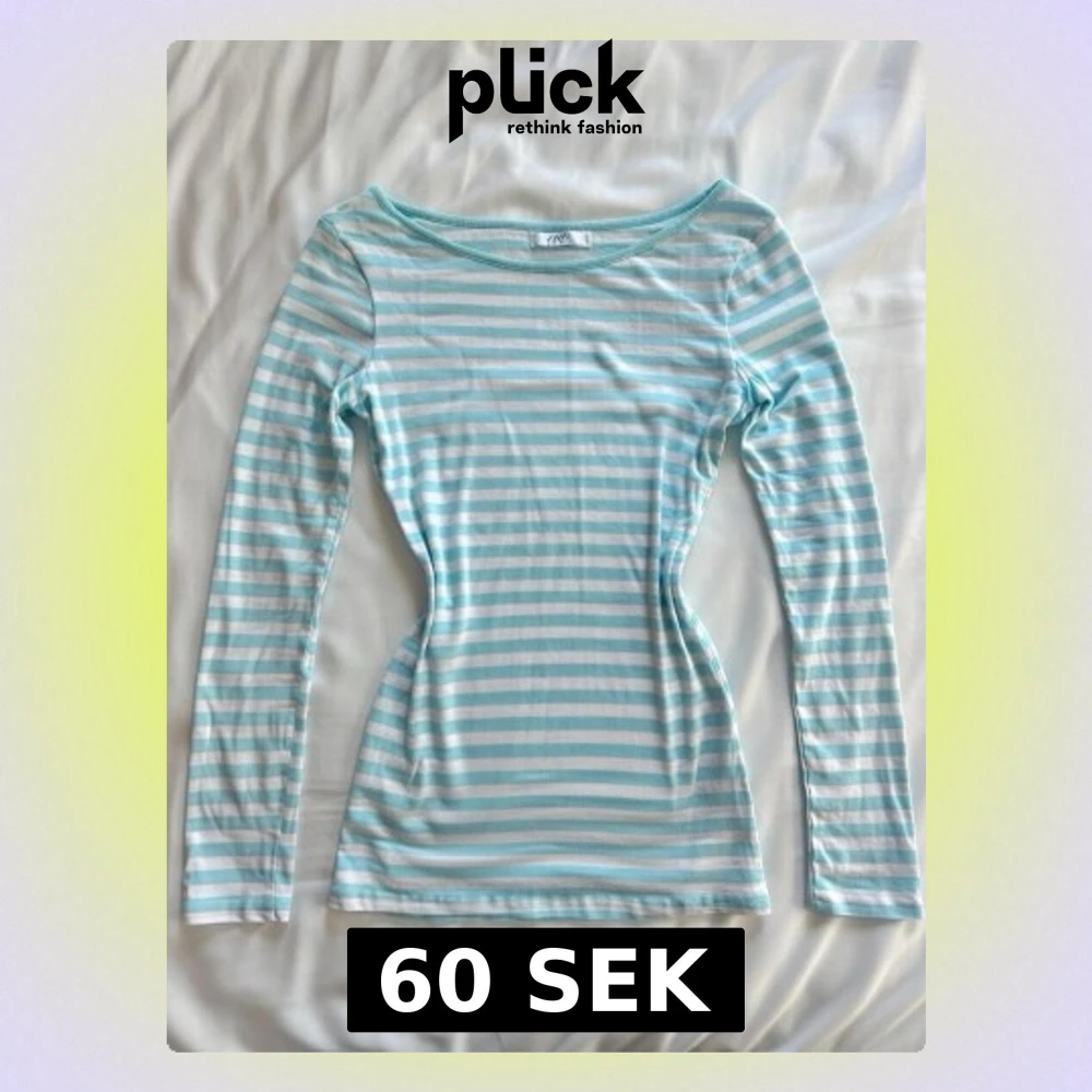 Säljer en långärmad topp från Aéropostale med ljusblå och vita horisontella ränder. Toppen har en figurnära passform och rundad halsringning. Perfekt för dig som gillar en enkel men fräsch stil. Den e dock lite genomskinlig