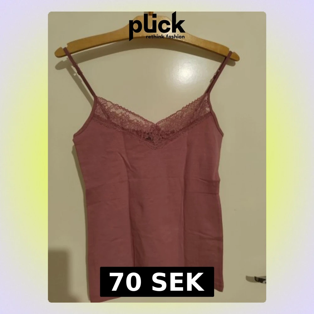 Supersöt rosa linnetopp med tunna axelband och v-ringad spetskant framtill.Man kan ha den under nån tröja med spetsen som syns, ger lite downtown girl vibe, jättegulligt. Toppen har en mjuk och skön känsla, perfekt för varma dagar. Spetsen ger en extra touch av stil och gör toppen lite mer unik. Enkel att matcha med jeans eller kjol.